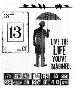 Five deeply etched red rubber cling mount rubber stamps that adhere to any clear acrylic block. We highly recommend using them with Tim Holtz Grid Blocks.