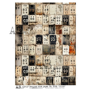 AB Studios Grungy Rusty Number Tags A4 Rice Paper 5196