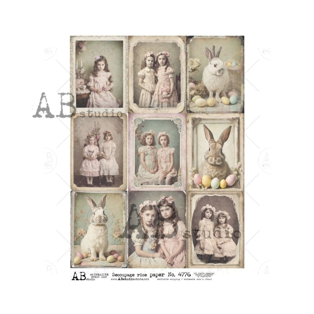 AB Studios Nine Vintage Style Easter Scenes A4 Rice Paper