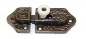 This small cast iron latch is an authentic reproduction of the latch of the Victorian era, this latch is spring loaded for automatic closing when the door is in the closed position. This small antique latch is offered in two colors natural and black.
