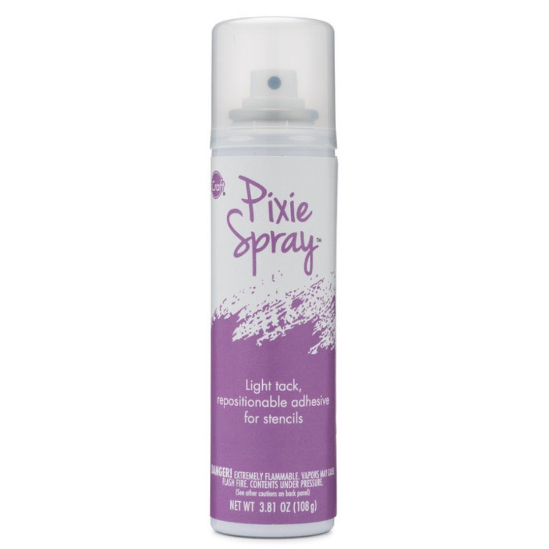 Create flawless stenciled designs with Pixie Spray Stencil Adhesive! This light tack, repositionable adhesive gently holds stencils in place but won't tear paper or leave a sticky residue behind.