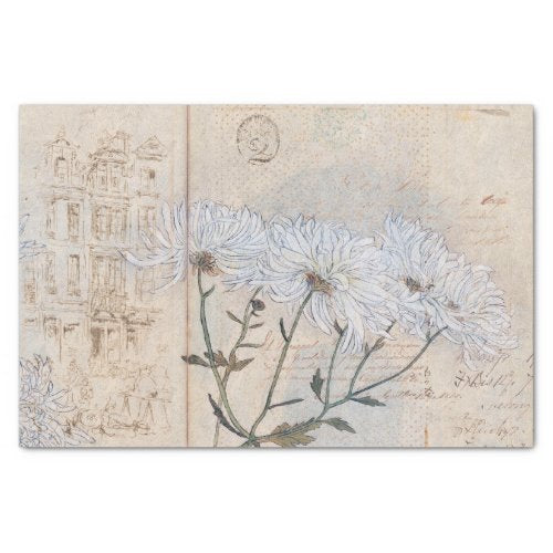 Vintage Rustic Crysanthemums Texture Decoupage Tissue Paper